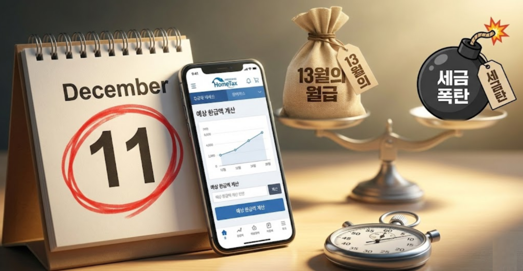 12월 11일입니다. 달력을 보며 한숨 쉬고 계신가요? 아직 늦지 않았습니다. 지금부터 남은 20일은 ’13월의 월급’을 받을지, ‘세금 폭탄’을 맞을지 결정하는 골든타임입니다.